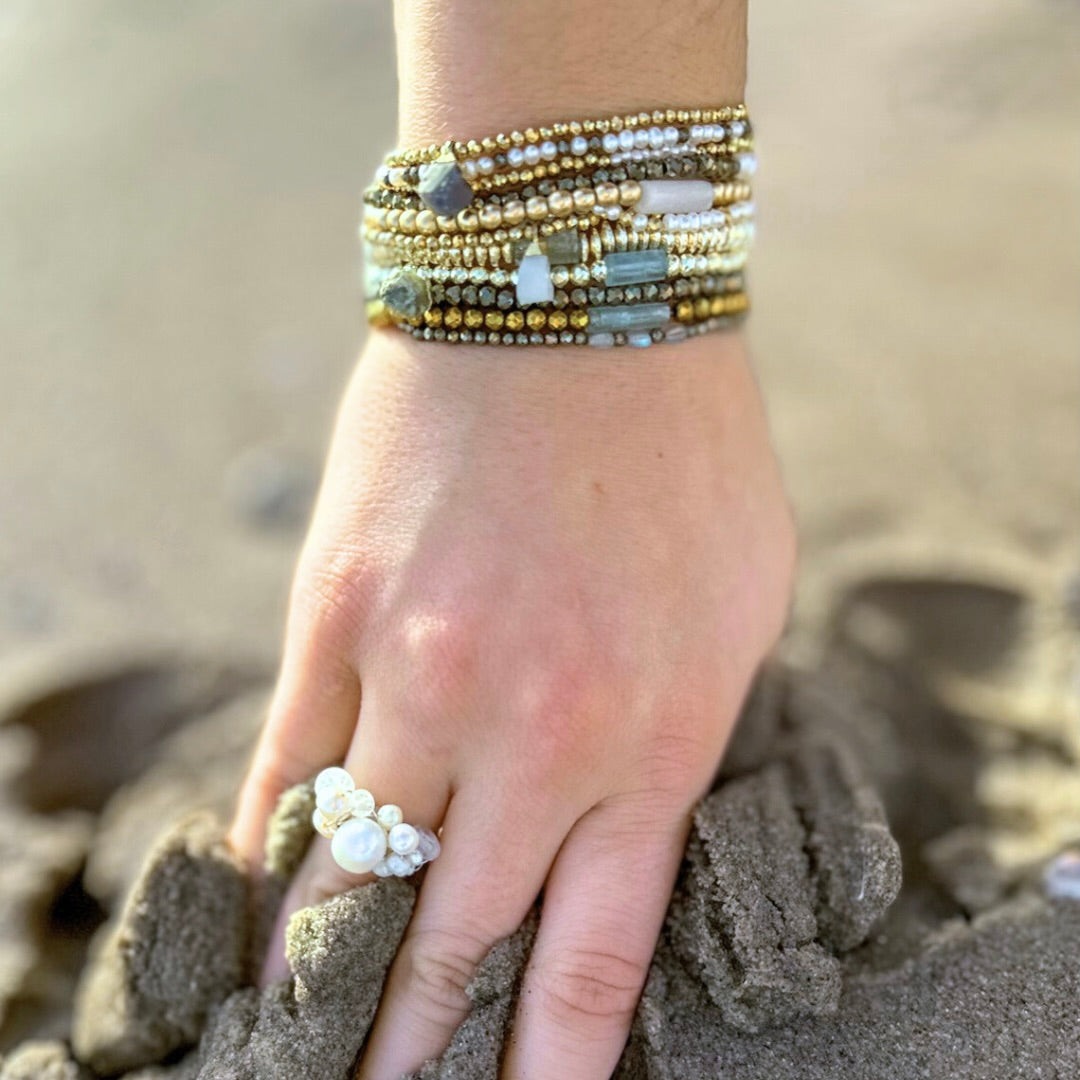Suede mixed with Gemstone + Pearl make for some of the most versatile, effortless and boho chic pieces of our line.