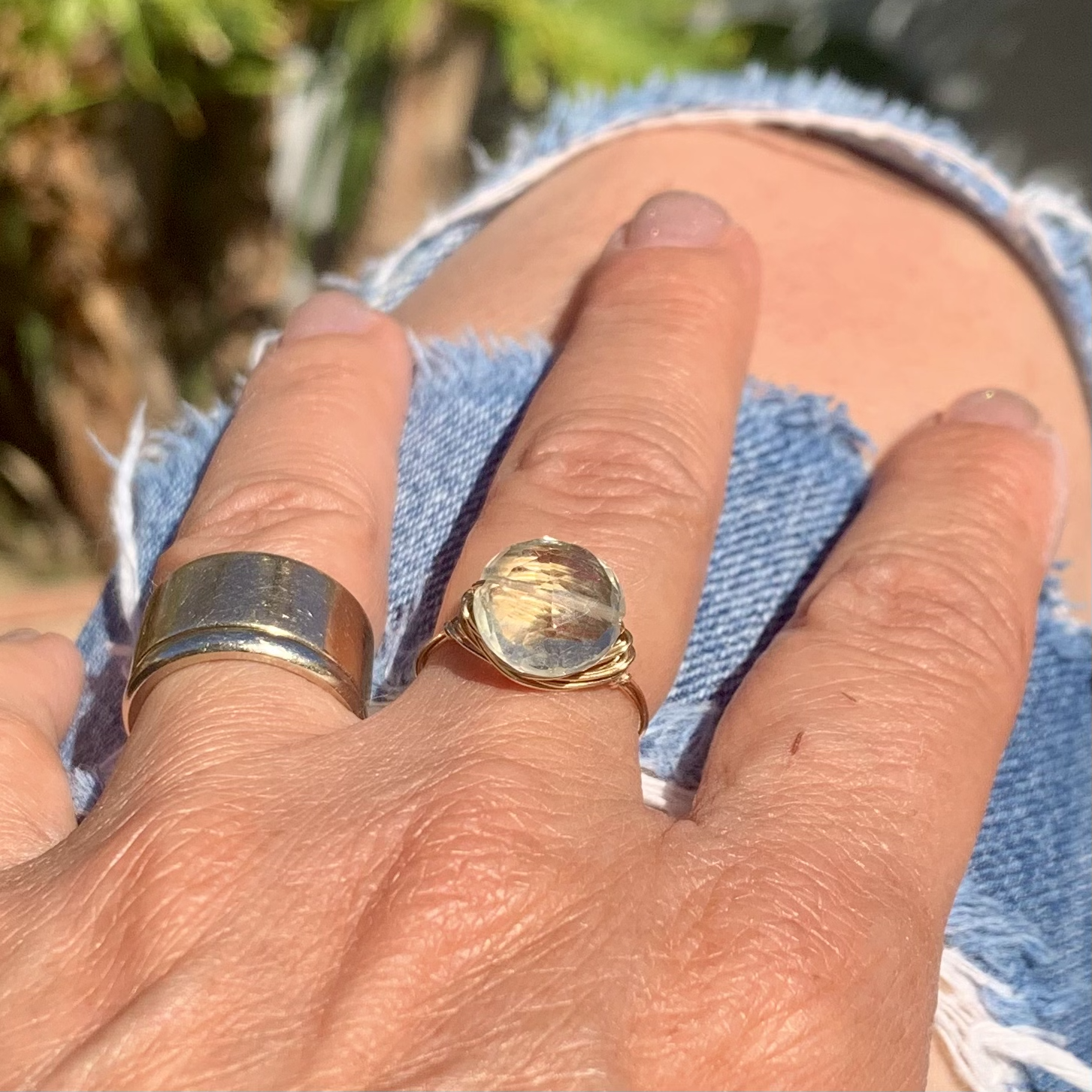 A sparkling iridescent Green Amethyst is glistens in wrapped nest of silver or gold. This gorgeous gem Green Amethyst, also known as Prasiolite, feels like magic. It is known to open the heart to receive and share love, encourage us to share our divine gifts with the world, connect with nature and create abundance.