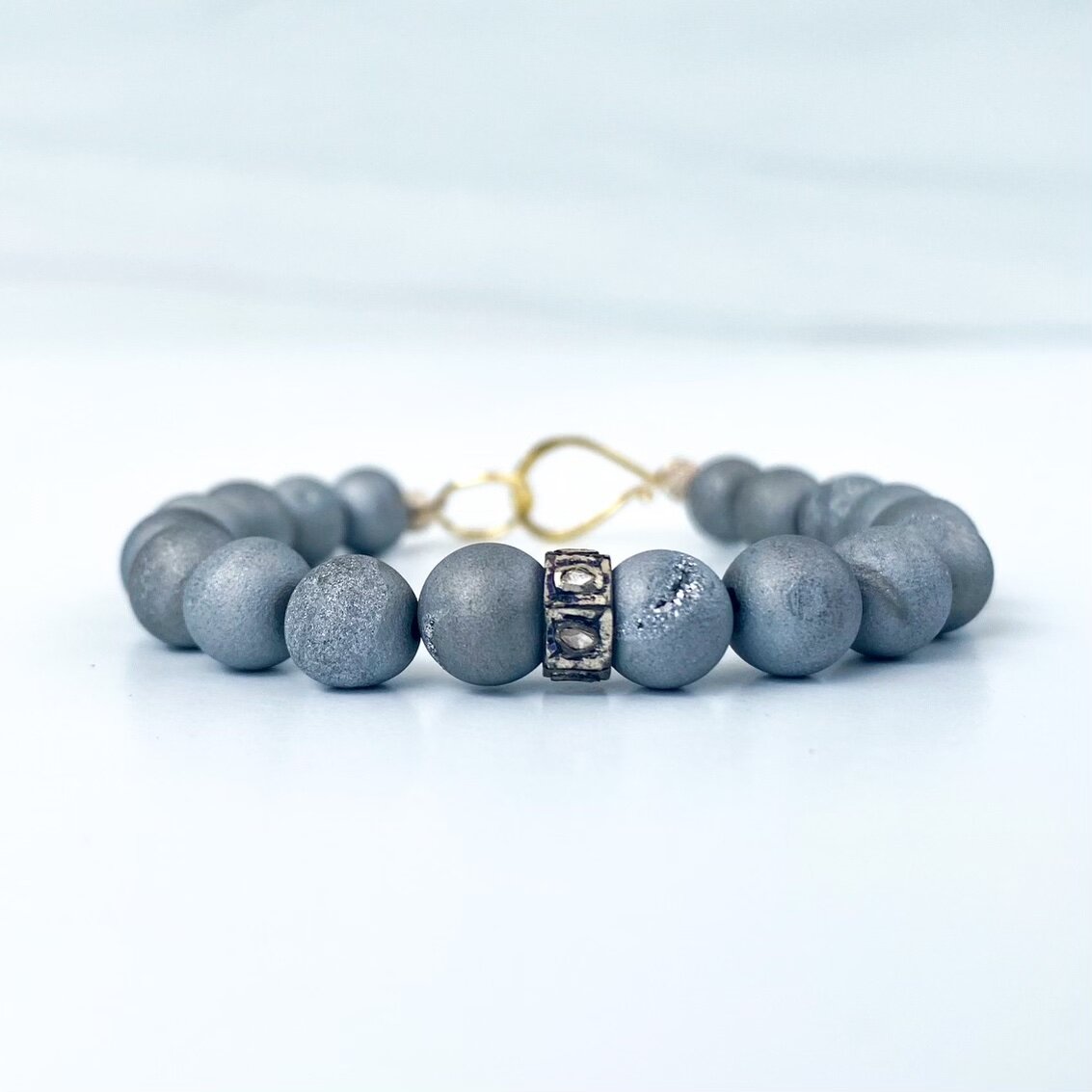 The unique combination of the heavenly rose cut diamond among a strand of the mystical earthiness of Agate Druzy, bringing security, calm and harmony (or the patience, steady growth and inner peace of Petrified Wood or Pyrite, bringing grounding, productivity and protection,) makes for a gorgeous balance of energies and piece of jewelry that feels wonderful to wear on its own or paired other favorites.