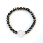 A synergy of feminine and male energies, the Moon Goddess Moonstone is dancing amid a band of Pyrite, protective and grounding, creatively stimulating, helpful for creating harmony, commitment, overcoming fear and enhancing memory, strength and perseverance.