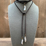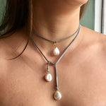Pearls enhance wisdom, tranquility, meditation, focus and truth. Shimmery creamy white or silver Freshwater Pearls pair perfectly together creating this versatile Pretty in Pearls Lariat that can be worn short or long! Such a fun piece that can go casual with a t-shirt and jeans or compliment something dressier. Choose from either 30" or 50” adjustable suede.