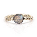 Light-filled Labradorite sits among a strand of stars (of Pyrite, Silver or Gold) to create an easy stretch ring that is fabulous worn alone or stacked together with others. Fits ring sizes 6-8